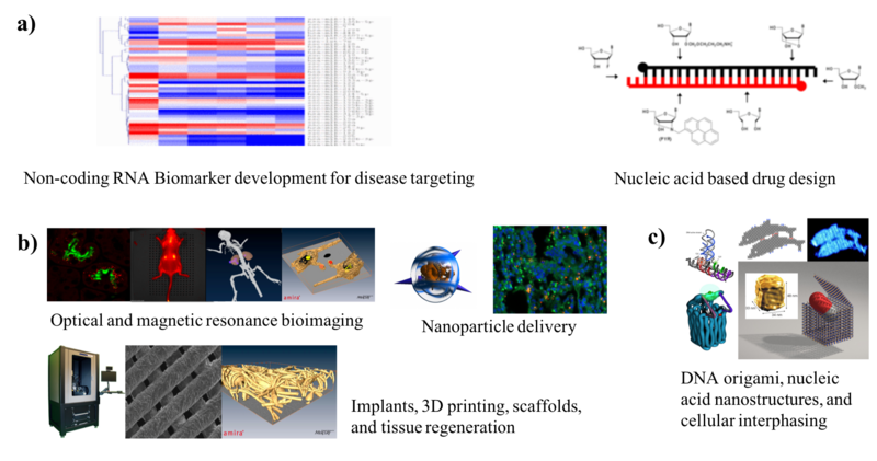 b) The creation of novel bioimaging and delivery systems for gene medicine including siRNA, miRNA mimics, antimiRs (antisense targeting microRNA) with a specific focus on inflammation, cancer, influenza, and regeneration of damaged tissue (tissue engineering).