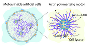 This work demonstrates the creation of artificial cells capable of forming cytoskeleton-like networks through actin polymerization driven by nanomotors. By mimicking the actin-based propulsion mechanism of Listeria monocytogenes, these hybrid vesicle-based systems integrate active matter and bottom-up synthetic biology to achieve life-like movement and structural organization.