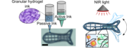 Hydrogel-based actuators, responsive to external stimuli, are promising for applications like soft robotics. We use 3D printing to create layered rectangles with gelatin methacryloyl (GelMA) and GelMA-poly(N-isopropylacrylamide) (PNIPAM) inks, evaluating their bending capabilities in a buffer. Gold nanostars act as photothermal elements, enabling repeated bending of a 3D-printed fish tail under near-infrared light, demonstrating the potential of combining 3D printing, responsive hydrogels, and photothermal elements for soft robotics.
