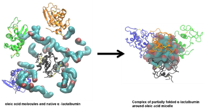 Lipids often interact with proteins and give new functionality or change their conformation. In this project, we have investigated a group of complexes formed between oleic acid and several different unfolded proteins. Because of the size of the complexes and the lipid component, it is not possible to obtain much structural information from NMR and crystallography but SAXS can give unique information on several important structural features of the complex.
