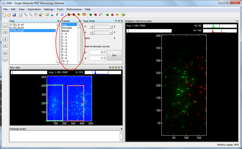 - In ALEX, the excitation order of consecutive frames in the raw movie is '...DADADADA...'. iSMS automatically registers the correct order when loading the data based on the default ROI positions. Thus, make sure the default ROI positions properly match the emission channels of the raw image.