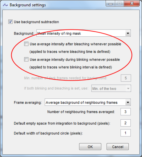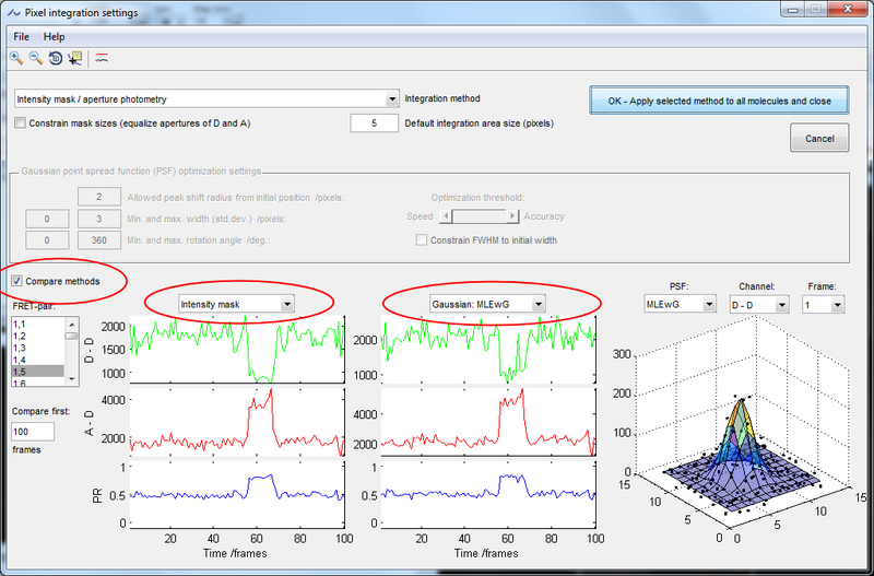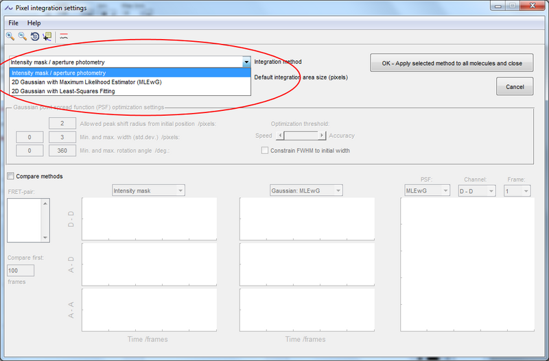 iSMS implements two methods for calculating fluorescence intensities of individual molecules: