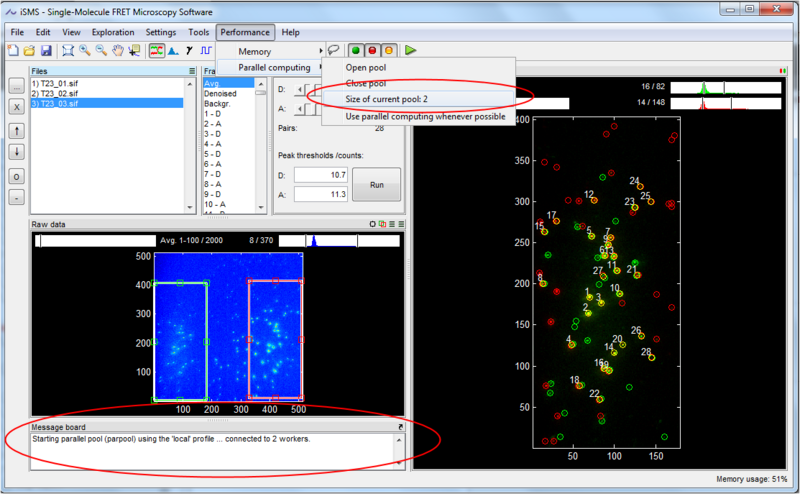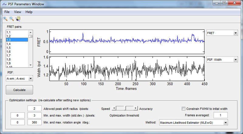 This example shows a timed comparison for calculating a 450 frame 2D Gaussian PSF trace in the TFM window of iSMS with and without parallel computing running on 2 cores.